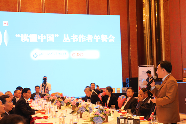 中国外文局副局长陆彩荣在“读懂中国”丛书作者会上发言